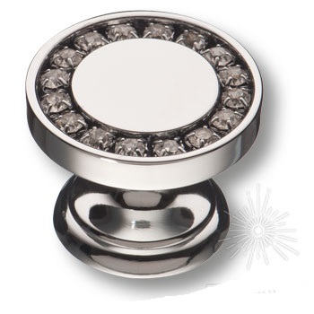 Ручка кнопка 0776-005, материал Латунь, отделка Хром Кристаллы Swarovski, 23*d=30 мм